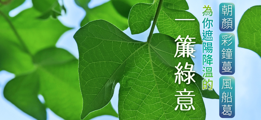 朝顏、蔦蘿、彩鐘蔓、風船葛除了作為盆栽欣賞之外,也可以為你提供遮陽降溫的一簾綠意,植株本身具有攀爬性,綠色的葉片不僅可以舒緩視覺疲勞,白天還能遮蔽毒辣的直射光,夜晚更不會散發輻射熱源,通透涼爽達到減少使用電力,最適合日照供過於求的夏季栽培。