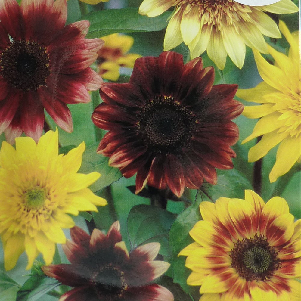 株高約180公分的高性種向日葵,花色包含黃色、紅色到雙色等豐富色彩,分枝性強、生長勢旺盛,適合切花也適合花壇栽培。
