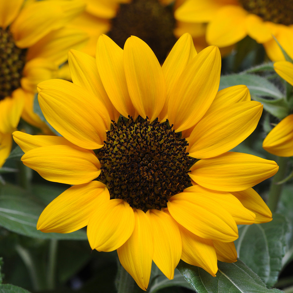美國進口,2010年新推出之矮性無花粉品種,不會因花粉而引起過敏或是污染家具。植株自然低矮,且節間緊密,葉色濃綠,搭配橘黃亮眼的可愛花朵,十分搶眼出色,不論盆植或是露地栽培皆適宜。生長勢強、抗病性佳,亦具早開之特性。花徑約7~10公分,花朵有面朝上的特性,且主花開完後側花苞接著開放,觀賞價值更高。適合盆植或是組合盆栽,若是室內光線充足,也可直接在室內栽培至開花。