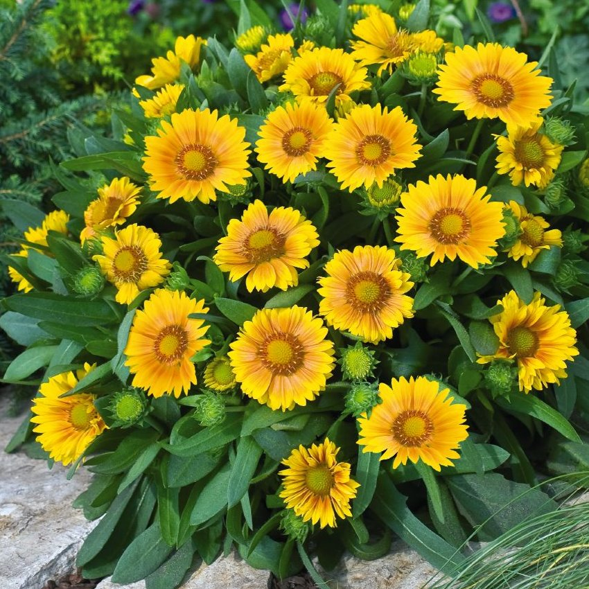 為植株嬌小、花朵卻很大的天人菊品種,花徑可達10公分左右,花色為橙黃雙色,植株強健且較其它品種緊密,分枝性強,適合盆植。年初播種可於夏季開花,花期很長,且對低溫不敏感,即使冬季低溫也可零星開花。為多年生草花,只要栽培得當,每年的夏天都會花開滿叢。適合栽種於花盆、花槽或是花壇中。