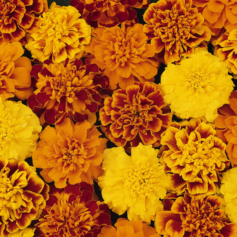 美國進口種子。孔雀草品種中的佼佼者,生長開花整齊,花期早,且花徑可達5~6公分,花瓣為完全重瓣、花色有單色或是雙色黃等多樣變化,共有7色混合。對環境適應力極佳,不論盆植或是露地栽培皆有良好表現。也可在一盆內播多棵種子,類似種子小森林的種法,另有一番風味。適合 盆植或花壇、花圃栽培。如何種植栽培要點可參考延伸閱讀。
