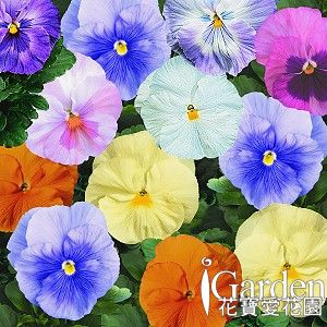 美國進口種子。屬於三色堇中的大花品種,花徑約6公分左右。植株較低矮,節間短,株型簡潔不蔓生,且對於日長較不敏感,可以較其它品種提早開花,對於暑熱的耐受程度又較其它品種佳,因此花期可以持續到初夏。植株強健,即使氣候變化劇烈亦不受影響。沙洲-清涼混合特選6種淡雅的花色混合,喜愛柔和色彩的愛花人不可錯過。播種後約2個半月即可開花,建議以4吋盆種植單株,或是以更大的容器多株混植。