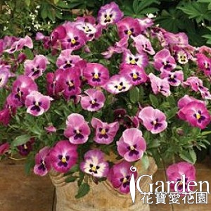 美國進口F1種子。為2013年新品種,枝條具有優越的分枝性,並向四方擴展,株徑約傳統三色堇品種的三倍大,因此使用較少的株數,就可覆滿花盆或花圃。早花,播種後需9~12週可開花,花朵比其它蔓性三色堇大,花徑約5公分左右,花梗亦較挺直。植株生長勢好,開花性佳,花色為桃色鑲邊及漸層,花心中央有紫色斑塊及線條,開出來的花色會深淺不同的顏色變化,有些花色較淺(接近白色),有些花色較深,十分豐富有趣。適合以吊植種植或是大型盆器種植、花圃、花壇種植。盆植時建議以4~6吋盆種植1株;10吋吊盆種植3株;12~15吋盆種植3~4株,或是以更大的容器多株混植。