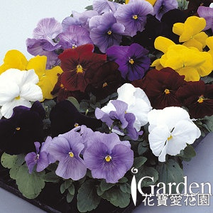 日本進口F1種子。黛娜系列為三色堇中的大花品系,花徑可達8公分,植株緊密不鬆散,無需低溫催化即可分化花芽,續花性及開花性佳且花開不斷,花期可從秋季持續至春末,清爽為多達12色的混合,花色包含純白、奶油黃、金黃、黃、橙、粉、桃、鮮紅、淡紫、淡藍、紫、藍/紫心。