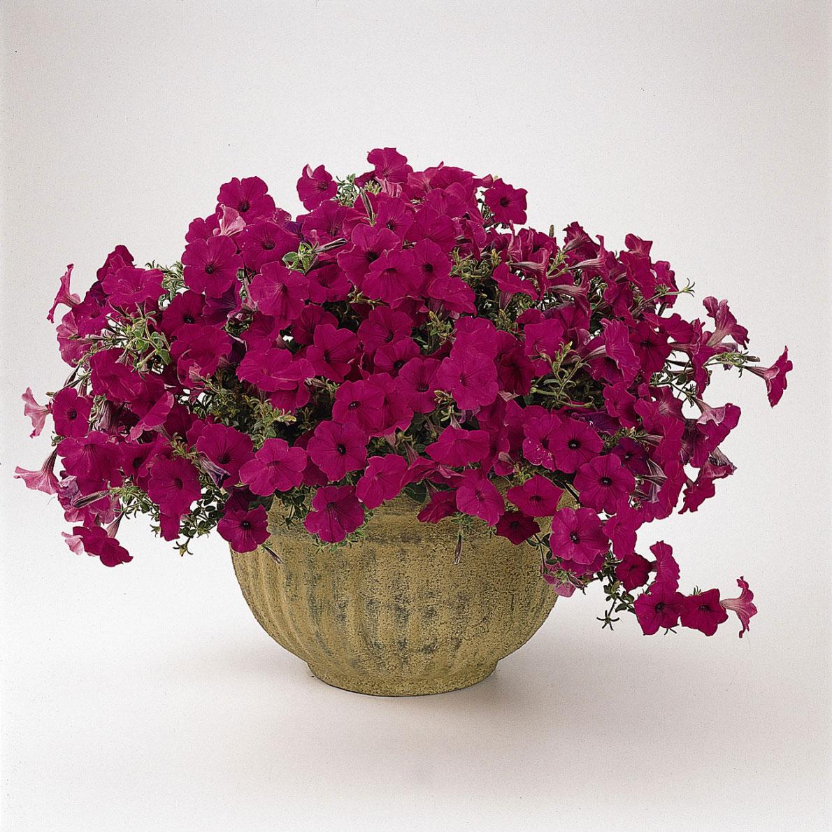 美國進口種子,波浪系列為匍匐型的矮牽牛的創始品種,即使已問世十數年之久,依舊是每年最暢銷的匍匐矮牽牛品種。抗病性佳,生長勢旺盛,植株低矮,匍匐性特佳,株徑可達90~120公分,因此不論盆植或是花圃種植,皆有優異的表現。花朵持續開花,花期可從春季至秋季,花徑約7~7.5公分,無須摘心,就能開花不斷。非常適合用於庭園或花壇、吊盆或組合盆栽。建議以6吋盆種植單株;或是更大的盆器多株合植。