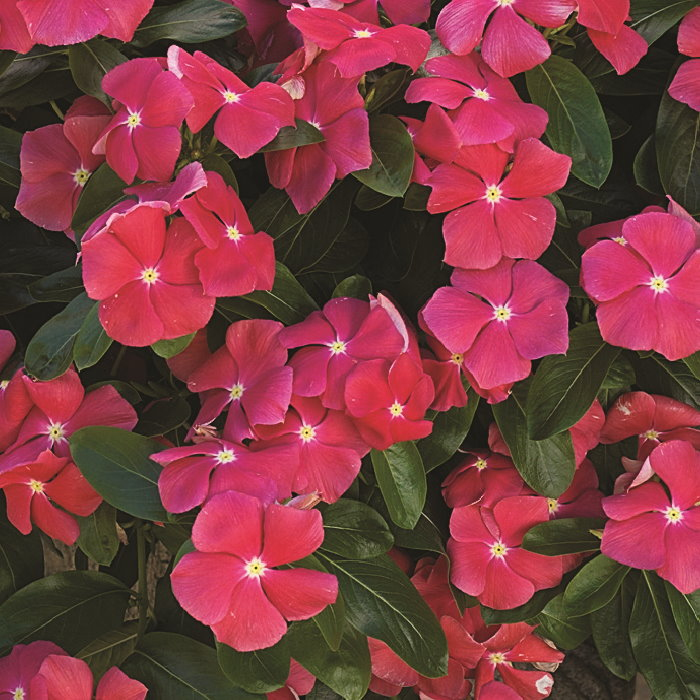 美國進口種子,為蔓性品種的日日春,枝條伸展性佳,葉片濃厚有光澤,分枝性好且密集,花瓣色澤亮麗不易褪色,可維持很長一段時間。種子本身兼具有抗疫病的基因,使植株不受疫病的侵襲,特別適合台灣高溫多濕的氣候。花色為鮮豔的櫻桃紅,適用於組合盆栽及景觀植物應用,也是花壇、窗台最佳盆花,特別是以吊盆或高大盆器栽植,最能展現其優越特性。