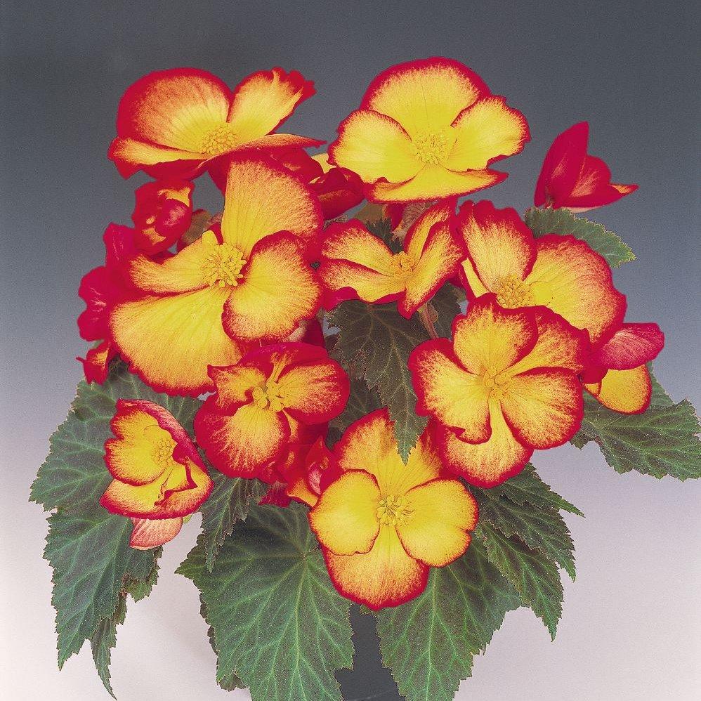 德國進口粉衣種子。單瓣大花的球根海棠,開花數多且花朵平整,花色金黃搭配深橘滾邊非常搶眼,與濃綠的葉色形成強烈的對比,播種到開花需18-20週,適合以花盆或吊籃栽培。