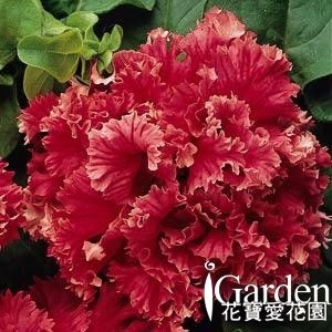 美國進口高品質F1種子,株型更緊密,花朵為完全重瓣品種,華麗的紅色大花,花瓣邊緣還有鋸齒缺刻,像是剪紙藝術般地美麗。適合盆植或地植,可以5吋盆以上的盆子種植單株或使用較大的盆器多株混植。