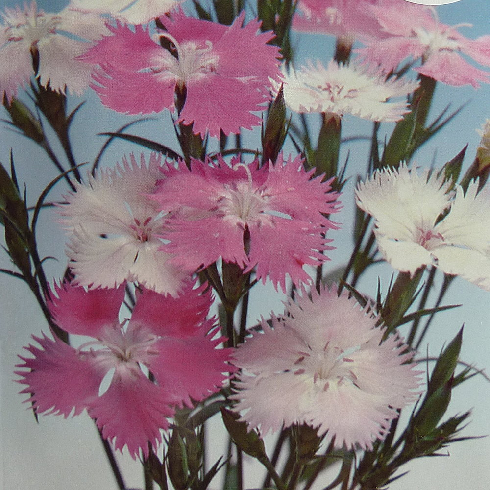 日本進口F1種子。為種間雜交所育出的四季開品種,花朵邊緣有如剪紙般的細鋸齒,花色從初開的白色逐漸轉為粉色,花莖細瘦、開散卻堅硬,姿態優美惹人憐愛,作為切花生產或栽種於盆器中皆適宜。