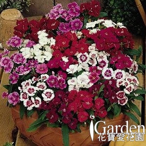 美國進口種子。植株較矮小的石竹品種,植株分支性佳。早花,若於春季播種,約9~10週可開花。葉色濃綠,花朵邊緣為深鋸齒狀的蕾絲邊,花色則有白色、桃紅、粉橘、深紅、紫色、莓紅、白花紅心等多種亮眼花色混合,觀賞價值高。適合盆植、花檯、花圃種植。