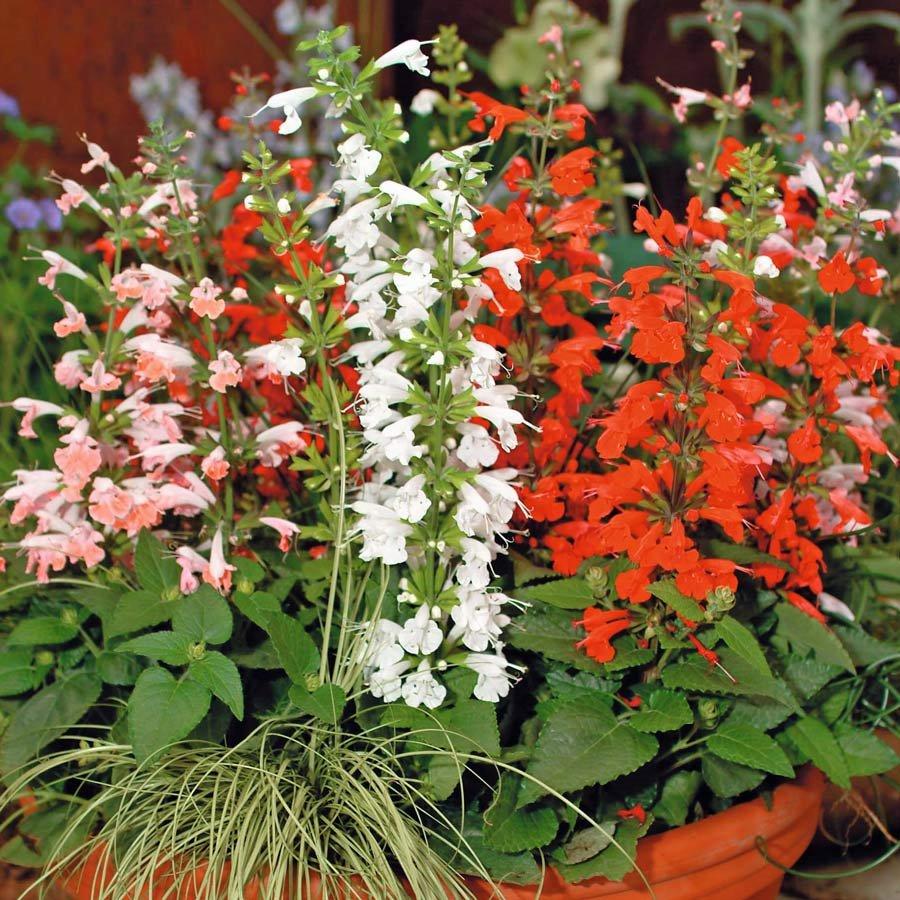 荷蘭進口種子。紅花鼠尾草具有耐暑、耐旱之特性,且花期特長,可從春季持續開花至秋季。播種後約11週左右及可開花,花穗長,花數多,分枝性強,生長勢佳,花色有白、粉、紅、深紅4種混合,是美觀的蜜源植物!適合組合盆栽、盆植、花槽、花壇種植,請使用4吋以上的花盆種植單株,或是多株合植於大型盆器中。