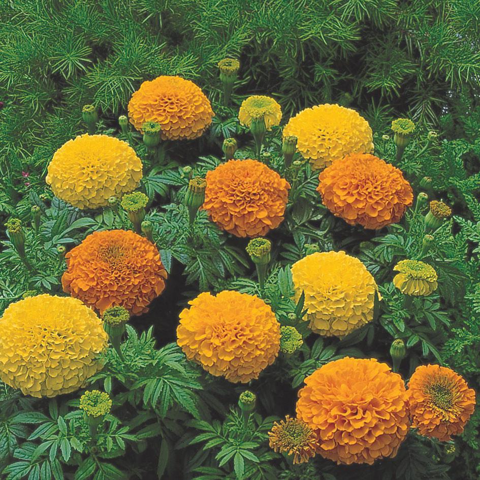 美國進口高品質種子。早花,即使在不同的日照條件下,一樣開花早。花大,花徑可達7.5~10公分,完全重瓣,花梗粗挺健壯,花期長,觀賞價值高。花色有橘、淺黃、深黃、金黃共4色混合,適合盆植,或花壇、花圃栽培。盆植時可以4~6吋盆種植單株,或是用較大的盆器多株栽培,是夏日花園最受囑目的美麗花球。