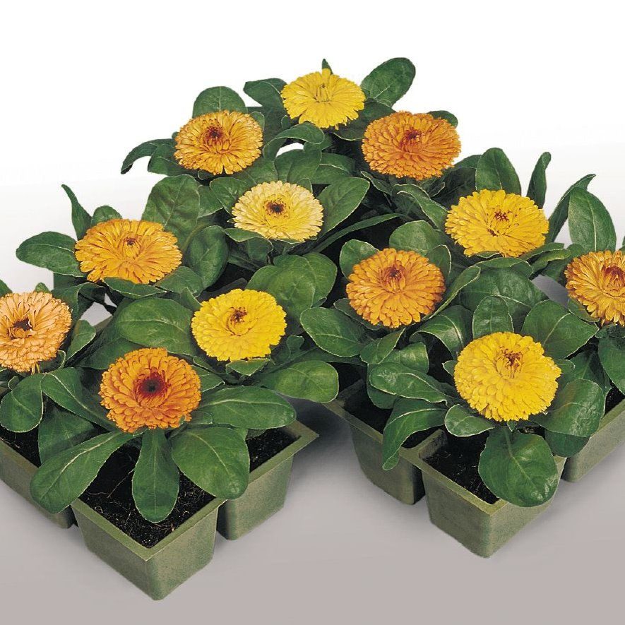 日本進口種子,屬於盆栽品種的金盞花,花朵為完全重瓣,花徑可達10公分的大輪品種,十分耀眼迷人。栽培管理容易,即使在貧瘠土壤上栽種,也能順利開花。金盞花的花瓣可食用,可加入生菜沙拉、煎蛋、湯中增添顏色及氣味。花色有橘色及黃色兩色混合,是非常理想的盆栽及花壇品種。可種於半日照至全日照的環境中。
