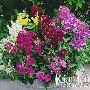 美國進口種子。早花,播種後約9~12週開花,植株矮小,花期特長。花朵似飛舞蝴蝶般的美麗,不同於其它花型閉合的金魚草品種。花色有淺紫/白、粉、深紫、紅/白、紅、桃紅、黃、白共8色混合,適合栽種於花壇、花圃,或以4吋盆栽培,也可用大花槽混色栽培,是冬春之際最受囑目的草花。