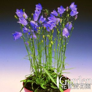 美國進口種子。具一定的耐暑性,不需低溫刺激花芽分化,播種當年即可開花。早花品種,可較其它風鈴花早約2週左右開放,藍色的鐘型花朵著生於纖細的莖頂,迎風搖曳,十分迷人。適合栽培於全日照環境。需肥量低,並勿過度施肥,建議以4吋盆以上的盆子種植單株。