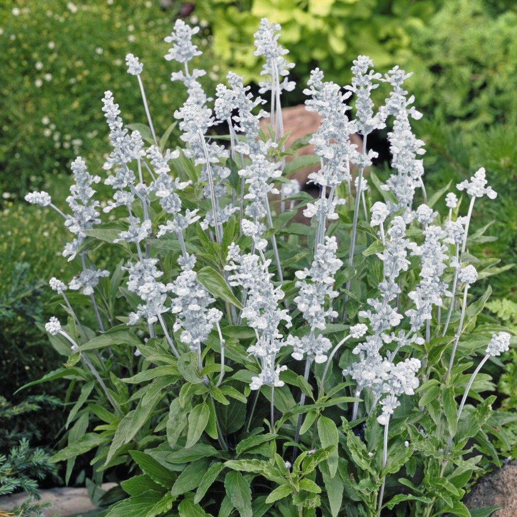 德國進口高品質種子。屬於粉萼鼠尾草,對環境的耐受力佳,不畏寒暑,生長勢良好,分枝性佳,花期可從春天持續至秋季。花朵白色,成串開放,優雅迷人,花朵凋謝後可修剪植株,可促使更多的花莖長出。適合盆栽、盆植、花槽、花壇種植,亦適合與其它較低矮繽紛的草花合植。盆植時可使用4~5吋盆種植單株。