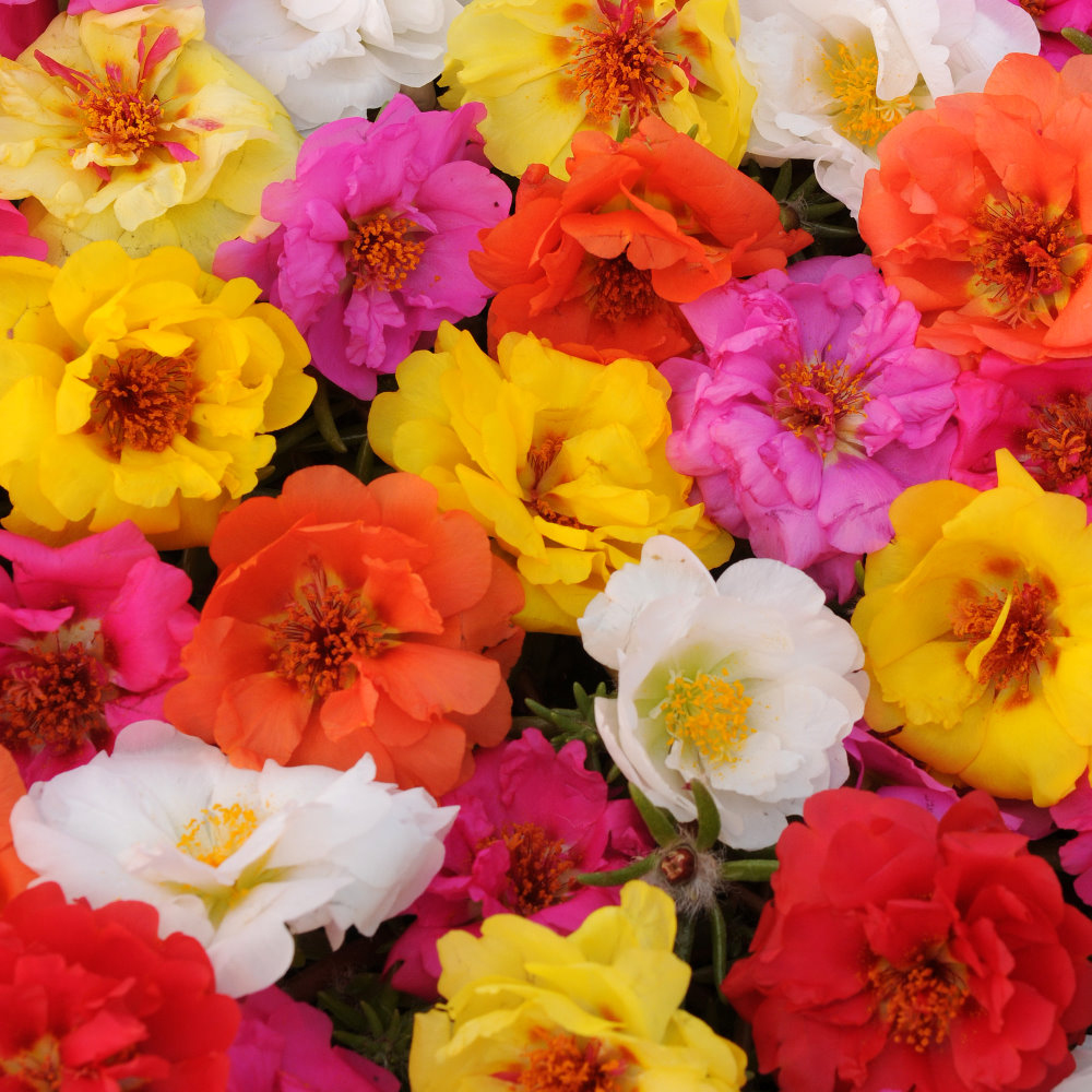 美國進口高品質種子,松葉牡丹 快樂列車為2013年最新推出品種,早花,植株低矮且枝條的延展性更佳,株徑可達35~45公分左右,因此更適合當吊盆栽植,用於花圃、地被,則或以較高的容器栽培亦適宜。花朵為重瓣,共有8色混合。耐旱性及耐暑性佳,是夏天不可錯過的草花!