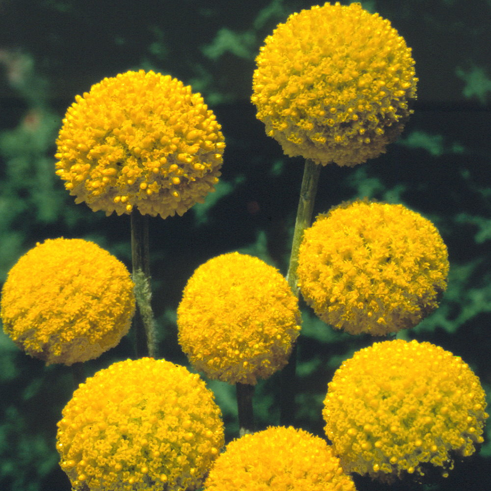 荷蘭進口種子。葉片線型呈銀白色,株高約60-70公分,耐旱性佳、性喜排水良好光線充足處。獨一無二的黃色球狀花,花朵直徑約2-3公分,一棵植株約可採20-30支左右的切花,大量應用於西式插花、倒吊為乾燥花也相當受到市場的歡迎。