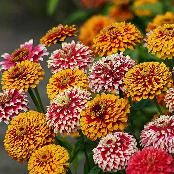 荷蘭進口高級種子。為特殊的雙色系百日草,花色皆以鮮紅為底,並搭配金黃及奶油色邊緣,花型為重瓣至半重瓣,花朵直徑可達8公分,植株生長勢強健;分枝性佳,曾於2012年獲fleuroselect授獎肯定,應用於小型花園至大型地景都有出色的表現,也可栽培作為專業切花生產之用。