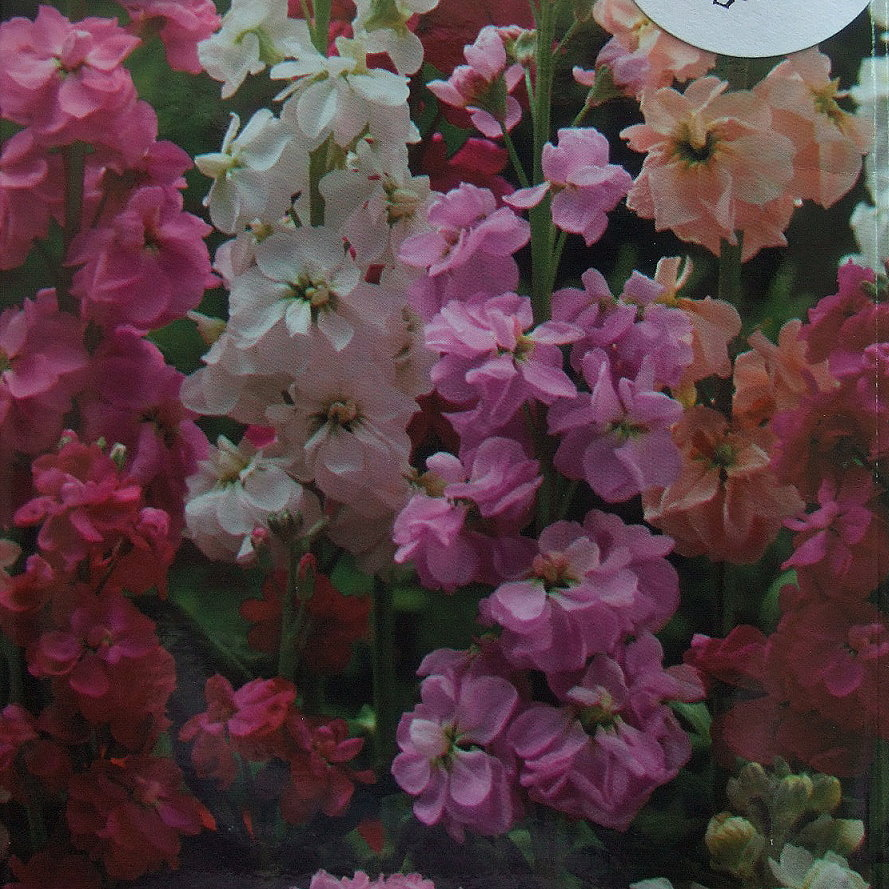 日本進口繪袋種子。株高約70公分的高性品種紫羅蘭,花朵具有宜人香味,夜間特別濃郁。花色豐富,為不易產生分枝的品種,因此每株所長出來的花序較長,花期持久。花朵有單瓣及重瓣兩種花型,可以從期時開始選別—發芽後,子葉完全展開且本葉開始長出來時,挑選葉色較淡且子葉較大的苗株,此為重瓣花株;子葉偏圓形、較小且葉色較深的,就是開單瓣花的苗株。