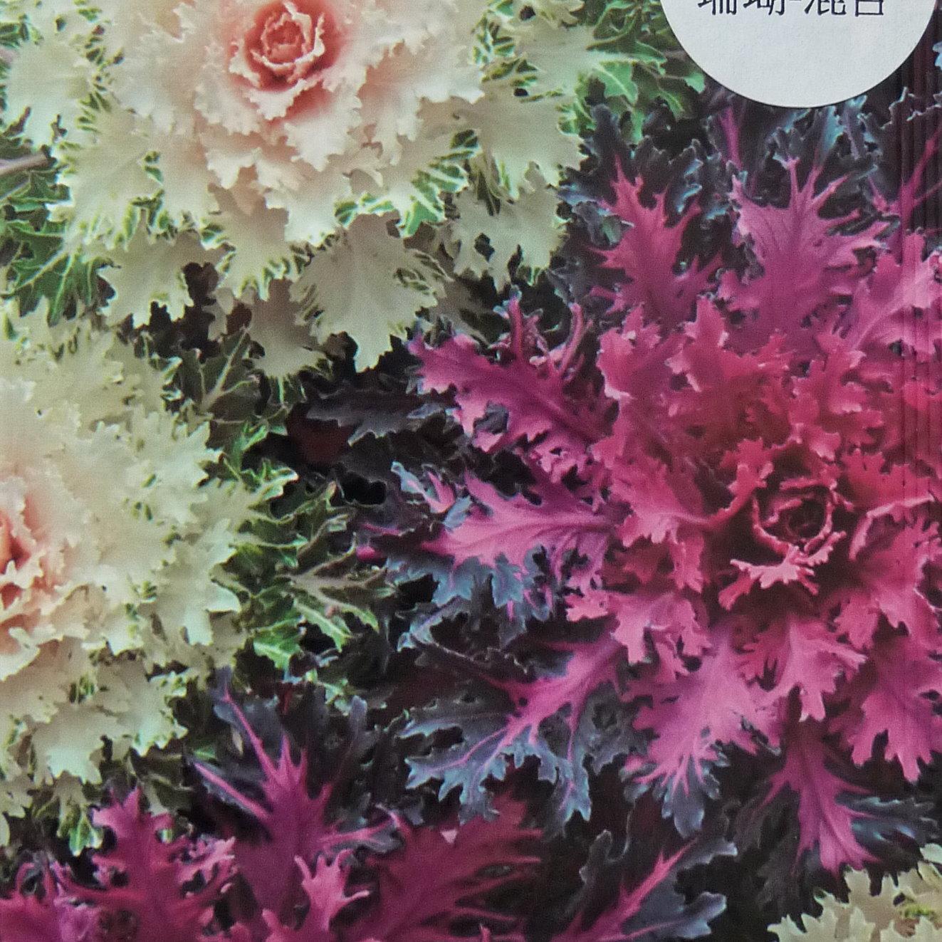 日本進口繪袋種子。F1品種,羽葉系矮性葉牡丹,耐寒性強,藉由低溫將單調的綠色葉片轉化成豔麗的色彩,植株較圓葉系來的大型;莖桿粗,葉片具有細小的鋸齒狀缺刻,形似珊瑚般的瑰麗,抽苔晚,花序優美,觀賞期長,花色為紅、白二色混合。