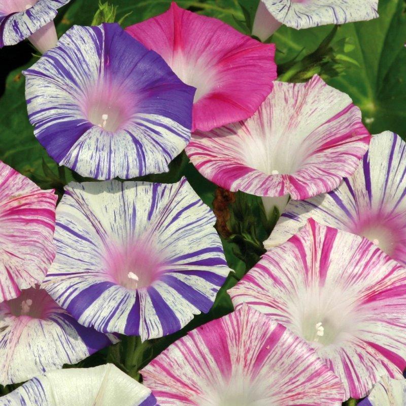 荷蘭進口高品質種子,威尼斯嘉年華的花色為藍白條紋、粉白條紋及些許的雙色花混合,葉片心形,栽培容易的攀緣植物,適合應用於圍籬或遮蔭,亦可栽培於盆器中欣賞,二者皆能顯現出壯麗的花容,引人駐足觀賞,是夏日庭園中必種的品項之一。