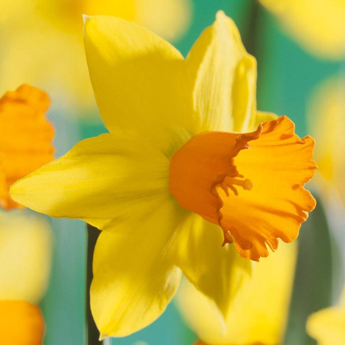 花色:單瓣,花瓣黃色,中央杯狀花冠亮橘色