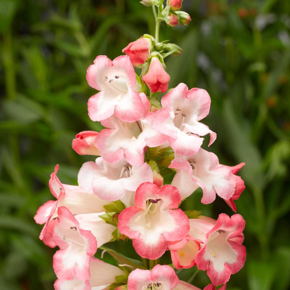 美國進口高品質F1品種。為2013年最新推出之釣鐘柳系列,具有傳統釣鐘柳的高挑身材,花色及性狀卻是推陳出新,更佳的分枝性,更結實的株型。不需摘心即可自然長出分枝,因此開花數較其它品種多。花朵大且花色柔美,花朵中心處為純白色,花朵邊緣有淺粉色滾邊,對比鮮明,清新可人!花期長,並具有耐暑性,適合以5~6吋盆以上的盆子種植單株。適合栽培於全日照環境中,不論盆植或栽於花壇、花槽、組合盆栽等皆適宜。