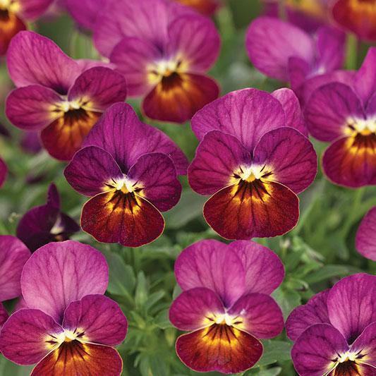 日本進口F1種子。香堇菜 珍品系列以廣泛可供選擇的花色以及優異耐寒性及耐熱性來獲得專業栽培者及消費者的認同,而其中特有的古典花色更是以一推出便獲獎而著名於世,承接其優異的分支性、花期持久、超群的續花力等特性,紫紅杏黃有著紫紅色花瓣搭配杏黃色的中心,特別張顯高貴的奢華感;吊盆或各式盆器,喜愛香堇菜那復古又典雅花色的您絕不容錯過!