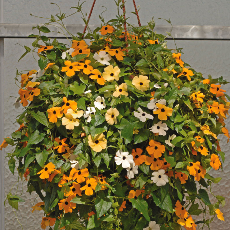 美國進口種子。藤本植物,生性強健、栽培容易,發芽後六週即具開花能力,花期可從晚春持續至秋末。包含三款清爽及三款黑眼共六個花色的混合。適合栽培為吊盆觀賞,或作為攀緣植物應用於牆面或空地美化之用。